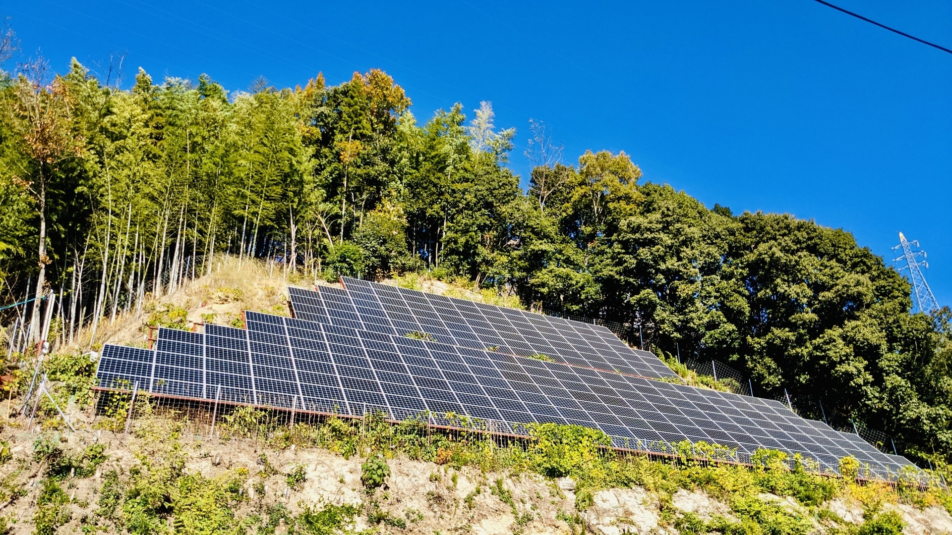 【野建ての太陽光発電施設】 っていうのは 一般家庭の屋根に載せている太陽光パネルではなくて 畑とか山林を切り開いて開発した 太陽光発電施設のことを言います。