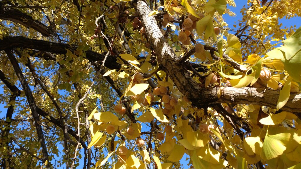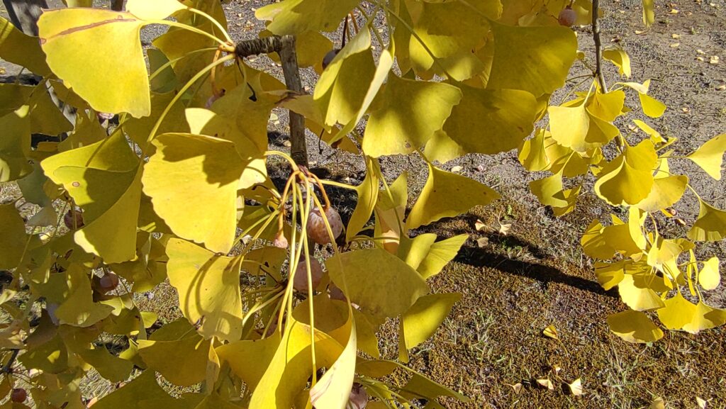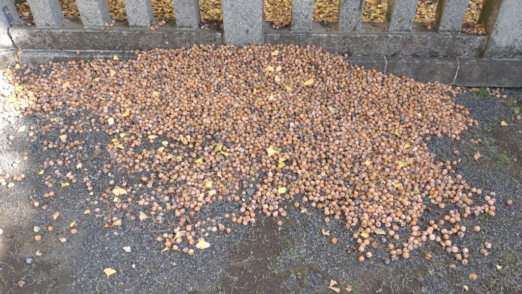 でね 上沢寺の銀杏も本国寺の銀杏も 女の子 なんだけど こちらの本国寺の銀杏の木は ↓ ご覧のように ものすごい銀杏(ぎんなん)が実ってます。