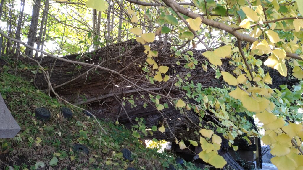 その倒れた木からまだ銀杏の木が生えている って感じでしょうか。
