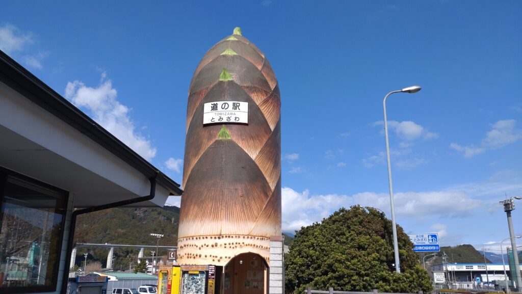 南部町 というのは タケノコの名産地らしくて この 道の駅とみざわ のシンボルも ご覧のようにタケノコ。