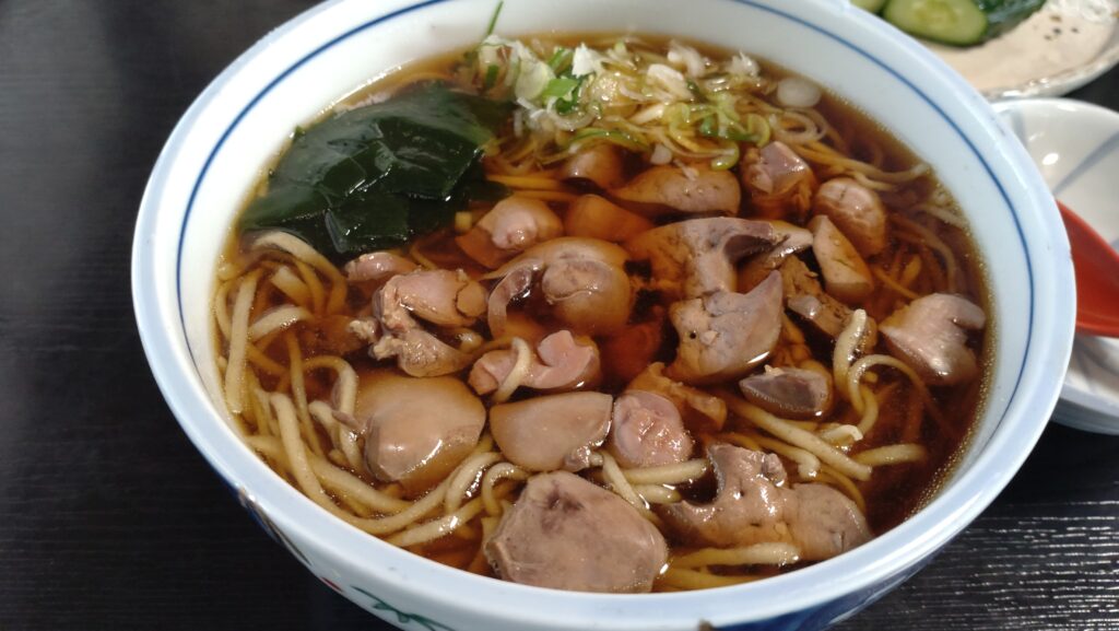 ↓ 連れが頼んだのは 鳥もつそば 980円