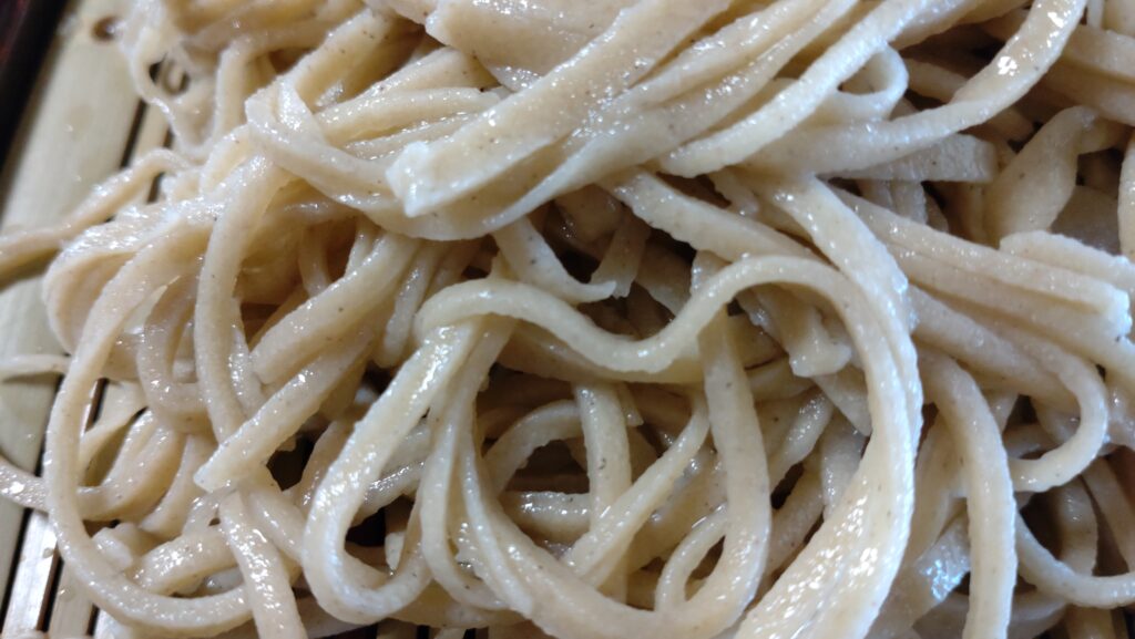 そば粉は 長野県産で 十割そば ではないようで つなぎに 山梨県産の小麦と卵を使用しているようです。(定かではありません 念のため)