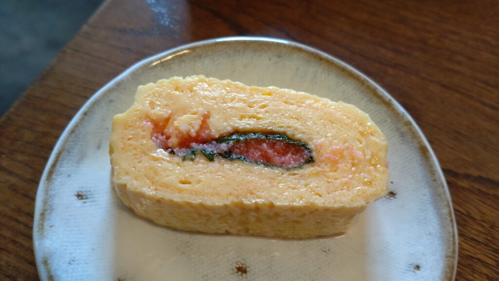 普通の出汁巻と紫蘇と明太子が入った出汁巻の2種類で 僕たちは 紫蘇明太子をチョイス。